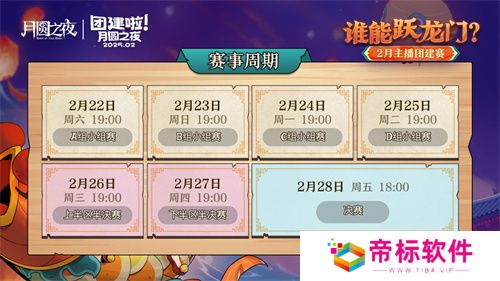 活动为期七天,小组赛/半决赛于2月22日-2月27日19:00-21:30开始,最终决赛将于2月28日18:00-21:30开赛。
