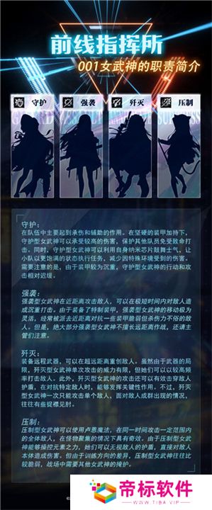 在神行少女的世界中,女武神们多以三人小队形式执行任务,彼此间相辅相成。女武神可大致分为四种职责,玩家应当巧妙运用职责特性,以便在战斗指挥时事半功倍。