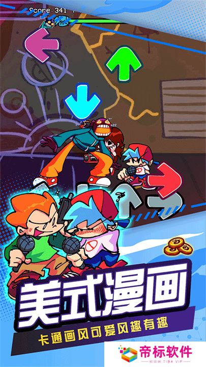 节奏跳舞机是一款充满活力与创意的音乐舞蹈游戏,采用了可爱的美式卡通画风,角色生动有趣,画面鲜艳夺目,带给你视觉与听觉的双重享受!游戏中的音乐种类丰富,既有魔性洗脑的旋律,也有节奏感十足的歌曲,玩家需要跟随音乐的节拍,精准点击方向键,让角色在舞台上尽情舞动。节奏跳舞机无论是新手还是音乐游戏高手,都能轻松上手,游戏操作简单直观。你将面对不同的挑战:观察对手的舞步,并在屏幕上准确地踩点,随着每一次完美的操作,你将获得高分!每个关卡都有不同的剧情与挑战,游戏内提供三种难度模式,从轻松到困难,逐步提升你的技巧,挑战自我。快来加入节奏跳舞机,感受充满放克节奏的音乐盛宴,和魔鬼一起挑战自己的舞步,展现最炫的舞蹈技巧吧!