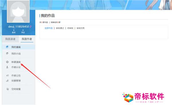 (1)、通过https://www.idmzj.com/网站右上方导航栏的“上传漫画”按钮或者个人空间->我是作者中的“新建漫画”进入漫画创建页面。