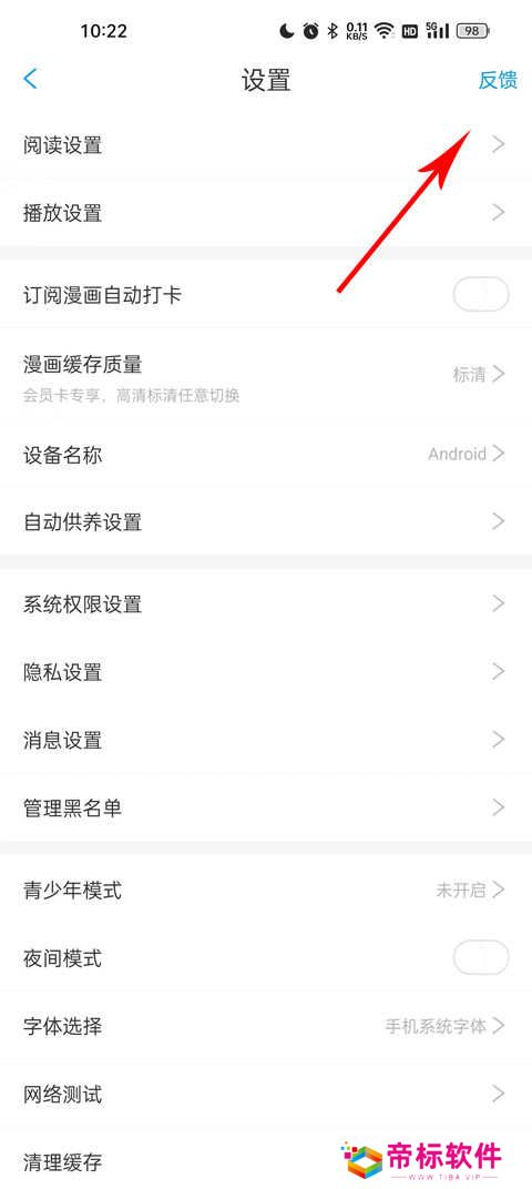 3、来到设置功能中,选择第一个阅读设置,然后进入;
