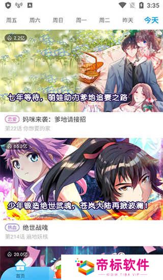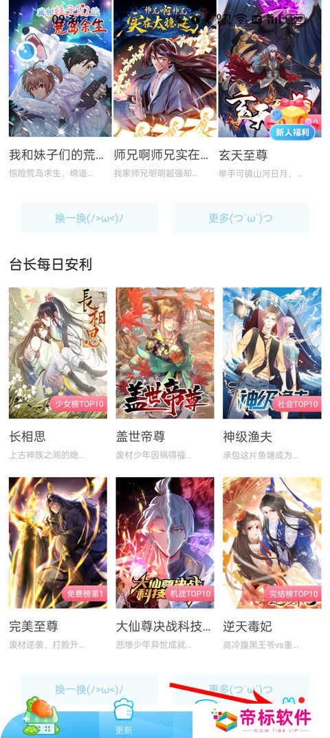 4、返回主界面上点击下方的更新,可以看到最新更新的漫画;