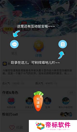 2、任意点击一本漫画进去,将会提示你可以留言,翻阅目录等;