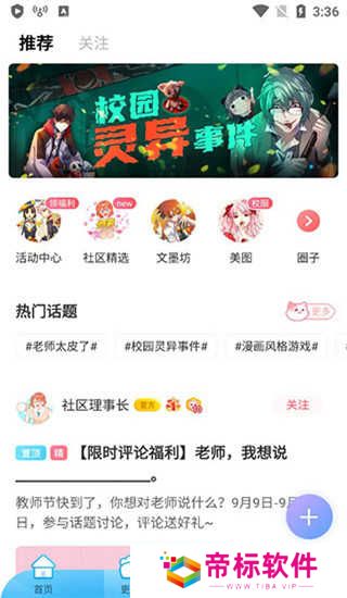 5、切换到漫画台,这里是有关该软件的热门话题的,还包括美图、社区精选等。