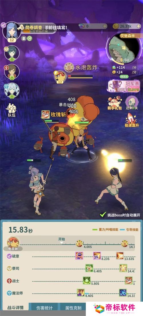 除了放置冒险的核心玩法之外,策略性非常强的战斗系统,也是《云海之下》区别其他放置类游戏的核心特色之一。除了玩家与幻兽之间的配合之外,技能时间轴的加入,需要玩家在游戏中抓准时机,精准实现打断BOSS施法,阻止BOSS释放大招的效果,以及更准确地调配技能,为队友净化负面状态等。