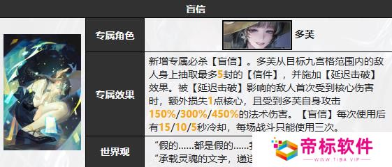 《无期迷途》多芙技能介绍: