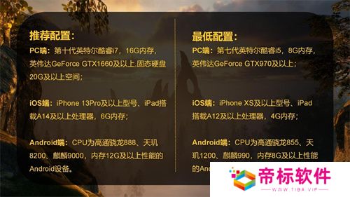 《黑光生存进化》有着经典的生存沙盒玩法框架,同时采用虚幻5引擎制作,带来了令人震撼的视觉体验。此次不付费删档测试为iOS、安卓双平台测试,为保证获得最佳游戏体验,建议玩家使用以下机型进行游戏,如设备性能不足,也可以下载《黑光生存进化》PC端进行游玩,尽情享受这场魔幻沙盒冒险之旅。