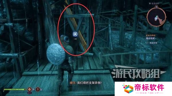 进洞后遇到关闭的大门,从右边走到高处,拉动机关开门。