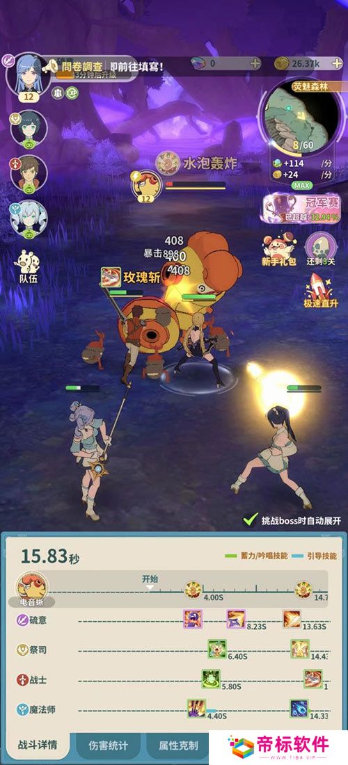 游戏不仅限于放置玩法,还有非常考验玩家的战斗系统,要求玩家和幻兽之间的配合做到完美,利用打断机制和元素相克原理(火、草、水、电、日、月),巧妙地安排战术,甚至通过对技能的精准释放做到为战斗增添变数,使得每一次对战都充满智斗的快感与惊喜。