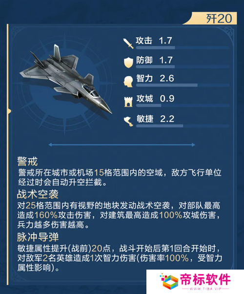 其中,歼20和歼8II作为游戏中的主力机型,各自具备独特的特性和玩法。歼8II具备超远距离攻击的能力,而歼20则以其高空高速的特性著称。这两种机型在游戏中的配将和阵容方面也存在差异,为玩家提供了更多的选择和策略空间。