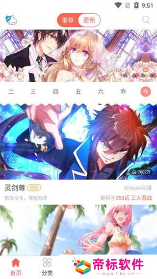 1、在首页中就可以看到推荐的漫画了