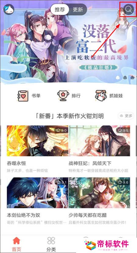 4、通过更新界面搜索,帮助你找到喜欢的漫画作品
