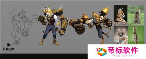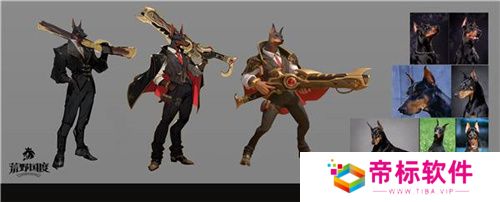 (游戏中的英雄阿什拉、杰西卡和亚当与原型薮猫、帝王蝎和德国笃宾犬对比,处处体现着角色设计的细节)