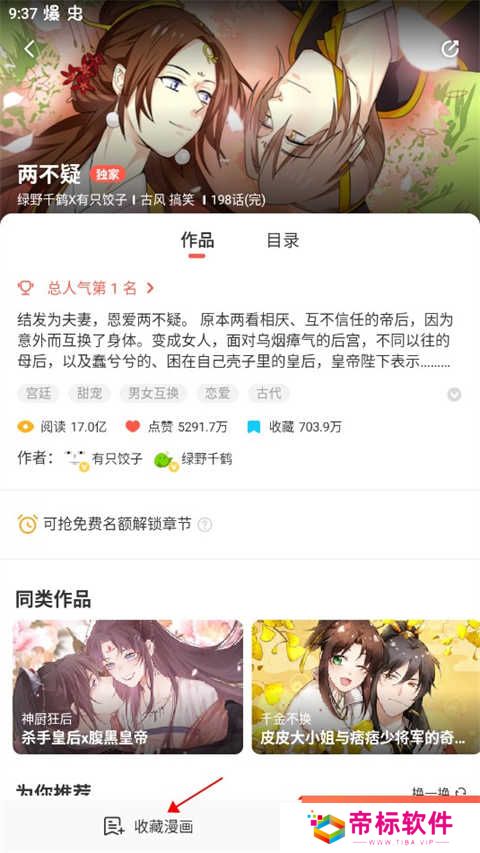 3、点开作品详情,点一下“已收藏”就可以把对应的漫画取消掉收藏了。