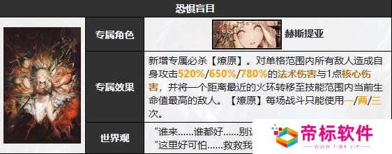 赫斯提亚虽然对象视力基本缺失,但疑似拥有察觉异常狂厄灾变和其他危险的能力。凭借这一能力,对象曾担任内海外“斯铎镇火母教”的圣女。下面和本站小编一起来看看吧