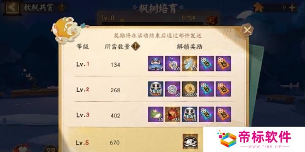 6、活动期间,玩家需要向同一个阴阳寮捐赠240个【秋韵红叶】,才能在活动结束后领取对应等级的寮秘宝奖励。
