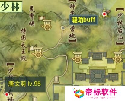 1、老少林对话【唐文羽】然后去少林后山点击蒲团拜拜获得【身轻如燕】buff;