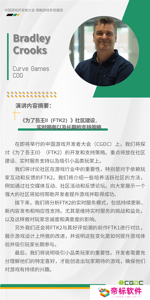 2024 CGDC 我们将继续为开发者们带来精彩的内容,今年大会将于7 月 26 日至 27 日与 ChinaJoy 同期举办,2 天共 8 个专场 60+ 不同主题的分享内容密集公开中,请大家持续关注官方推送信息。